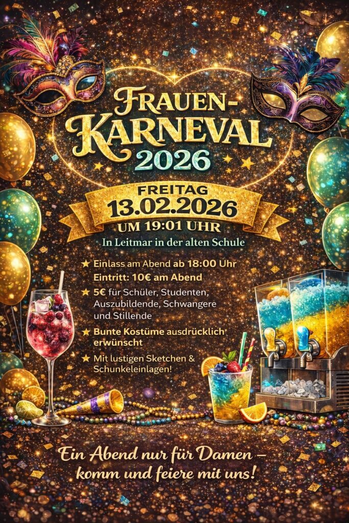 Am Freitag, 13.02.2026, ist es wieder so weit: Wir feiern Frauenkarneval in der alten Schule in Leitmar!