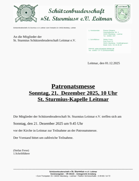 Im Anschluss sind alle herzlich in die Schützenhalle zum diesjährigen Weihnachtsmarkt eingeladen.